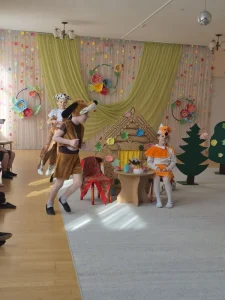 В нашем саду прошла театральная неделя. Наш коллектив показал спектакль по мотивам сказки «Заюшкина избушка». Были приглашены родители и гости. Спектакль получился красочный, задорный. Участвовали все ребята. Заряд отличного настроения и бурю эмоций получили, и дети, и зрители.